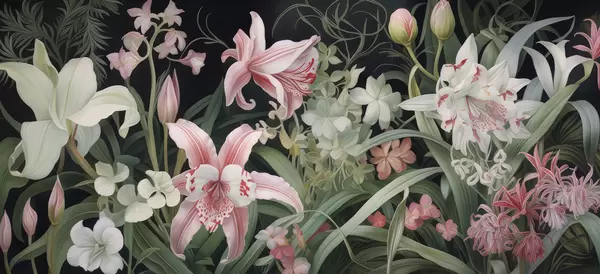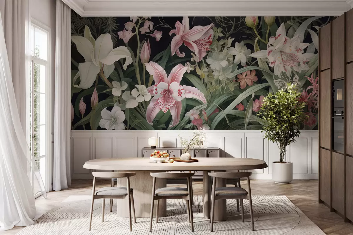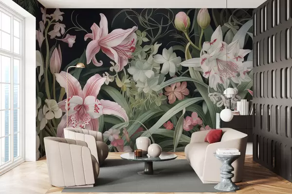 Fototapeter Fantastiske blomster på mørk bakgrunn Nr. w05278