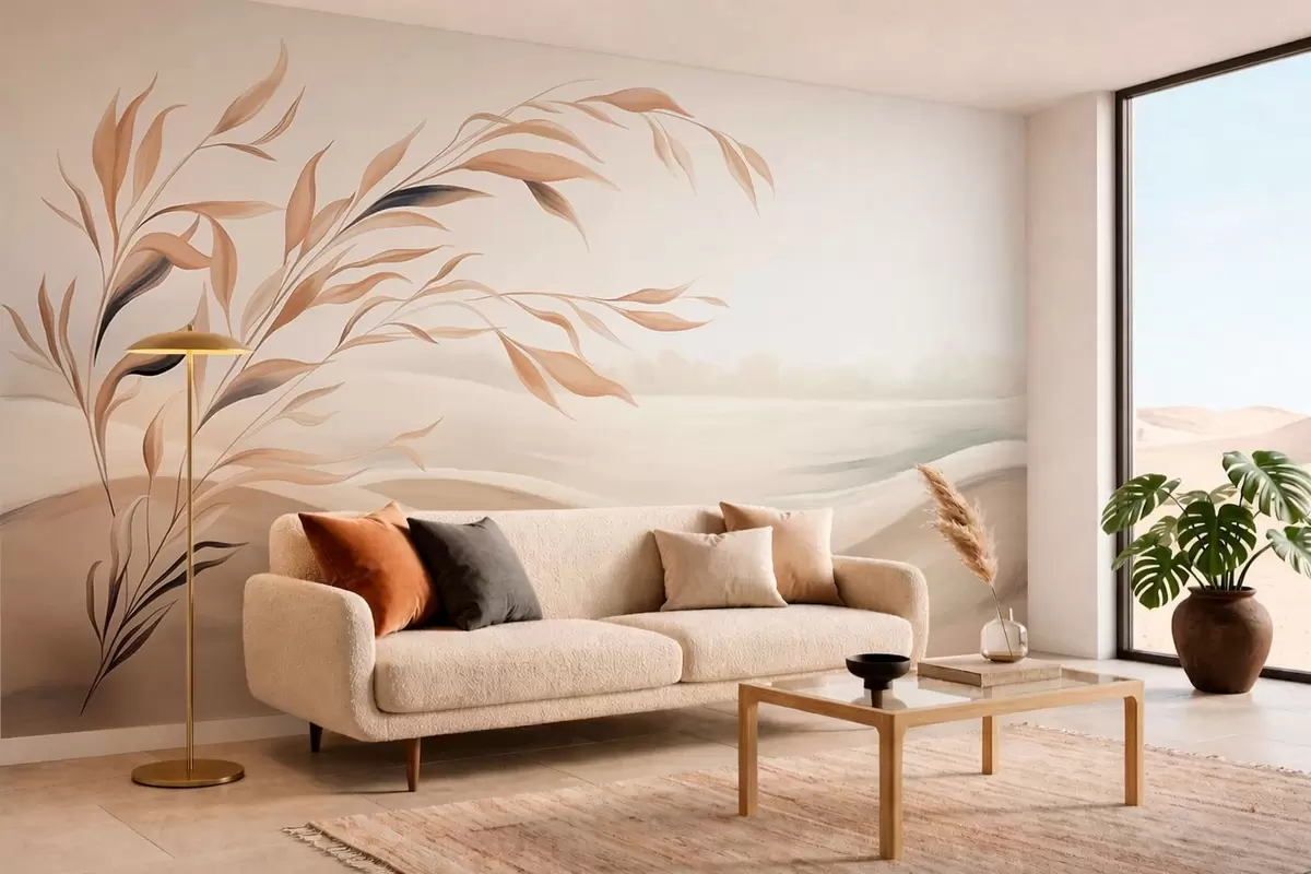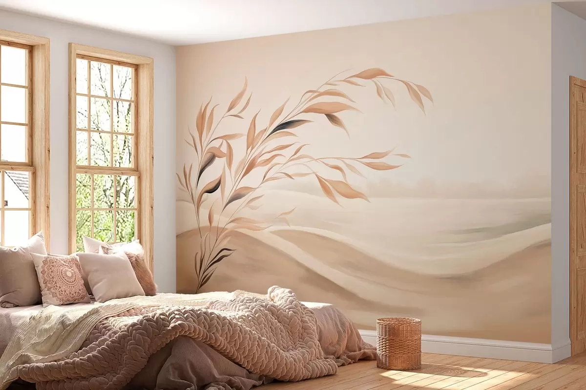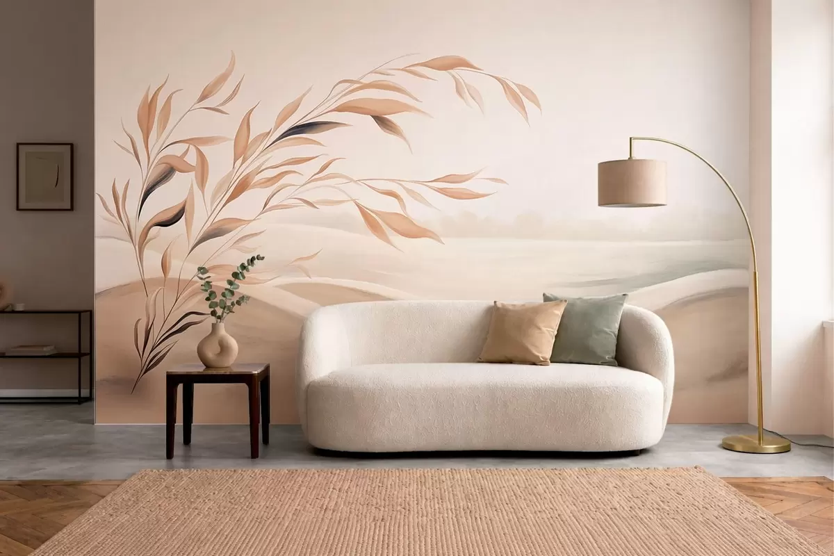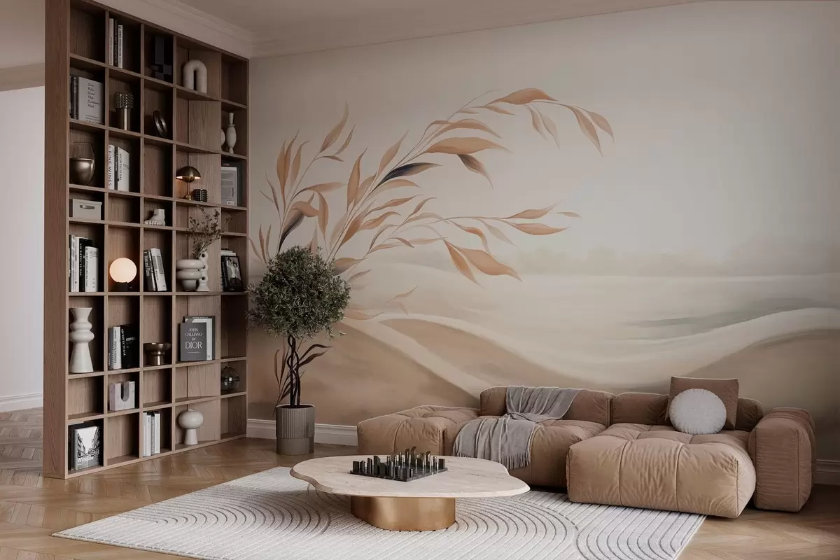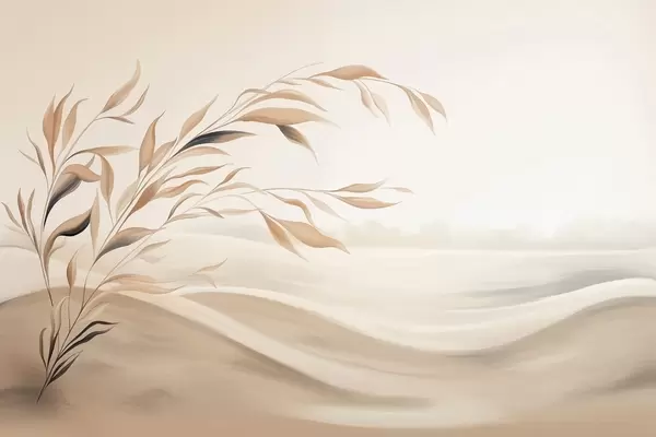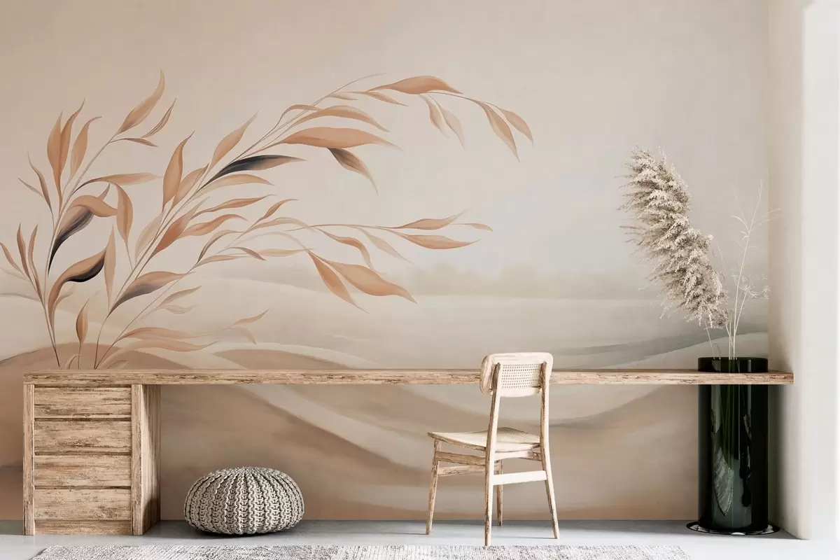 Fototapeter Et mykt landskap med en gren over åser i lyse beige nyanser Nr. w05297