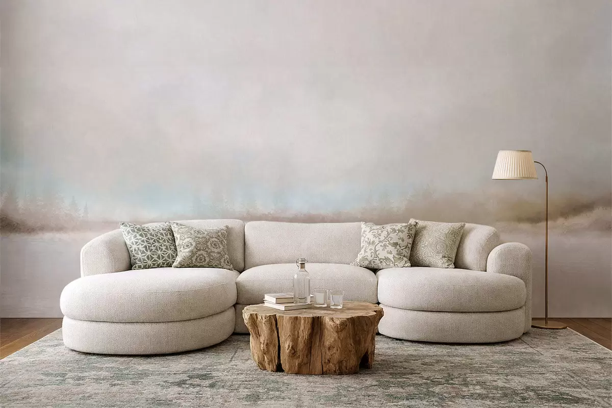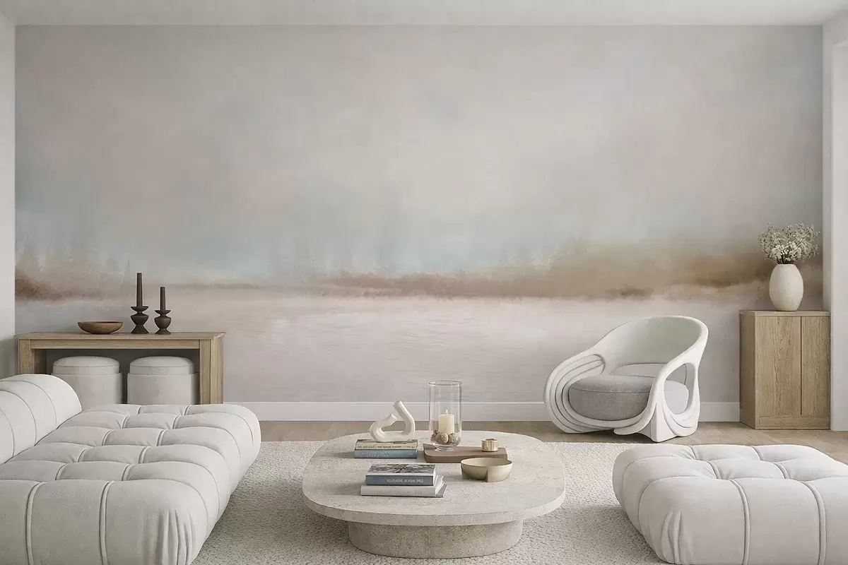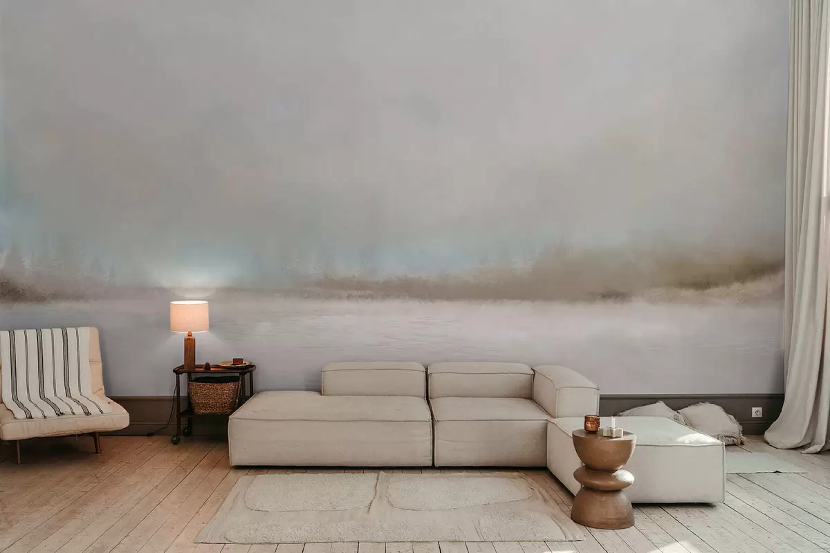Fototapeter Tåkete landskap med innsjø og skog Nr. w05319