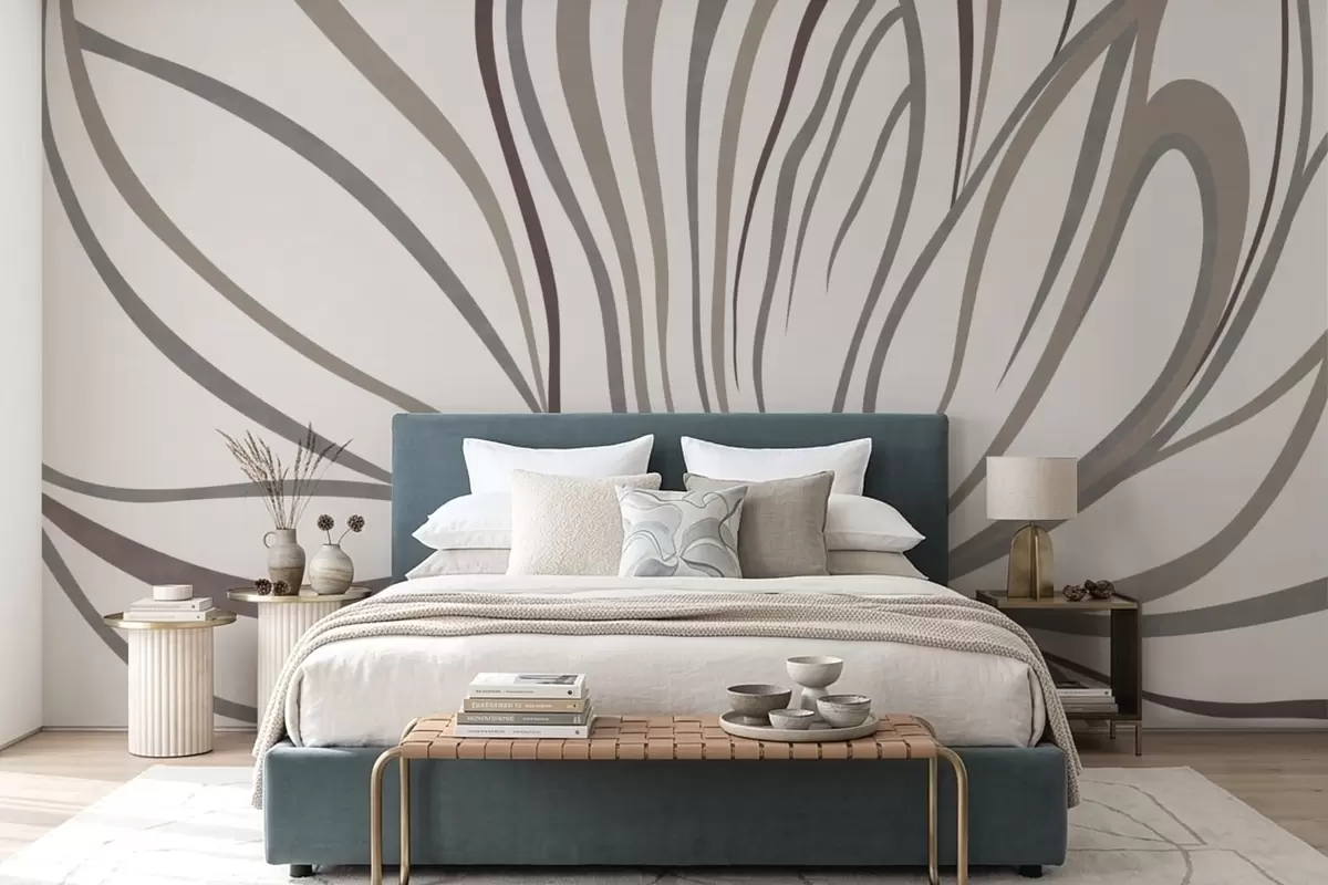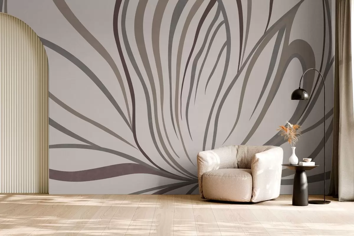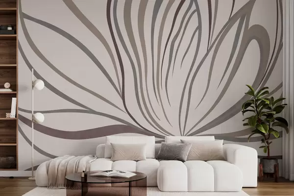 Fototapeter Abstrakt blomst med linjer i grå og rosa nyanser Nr. w05392