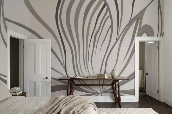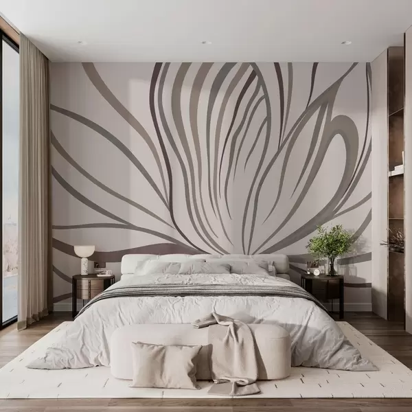 Fototapeter Abstrakt blomst med linjer i grå og rosa nyanser Nr. w05392