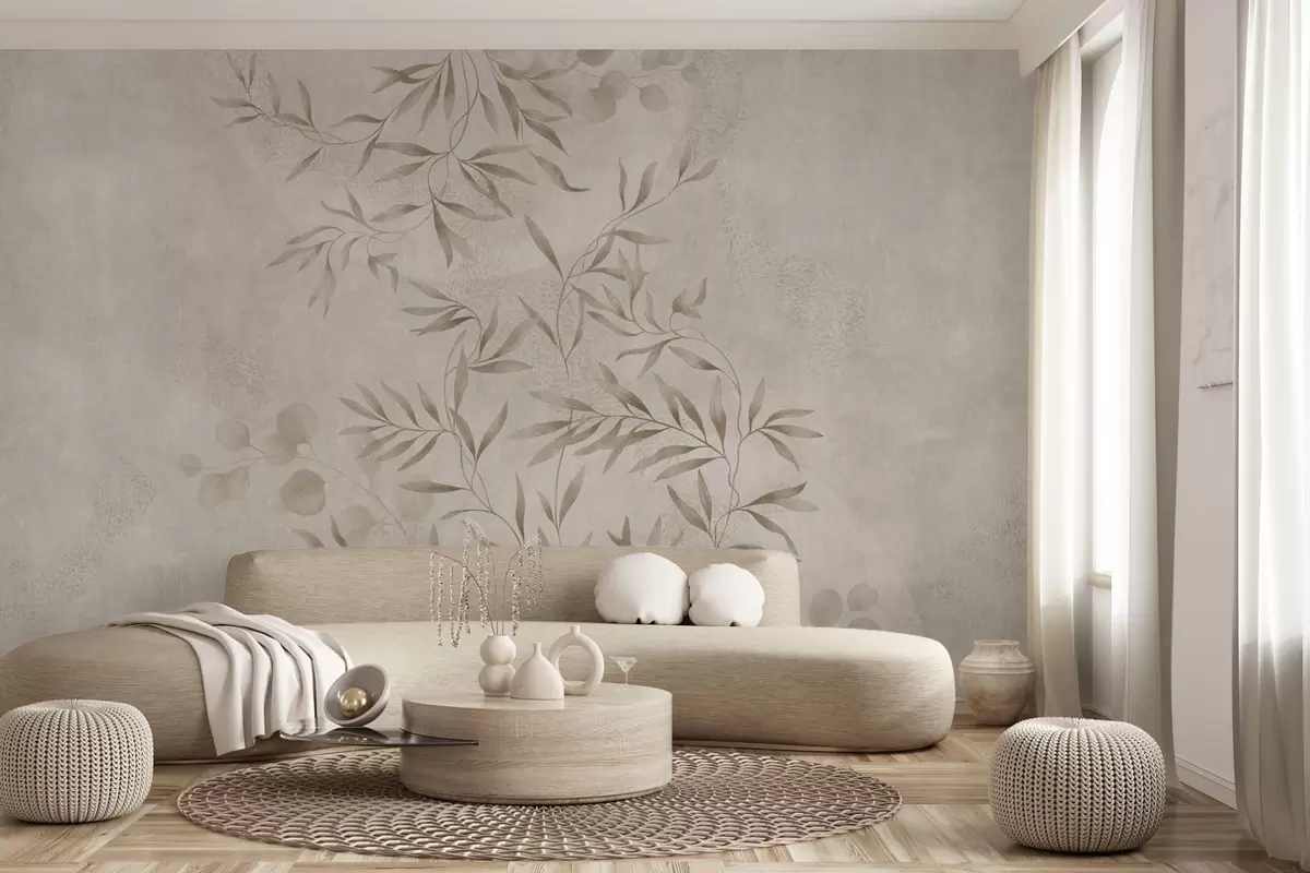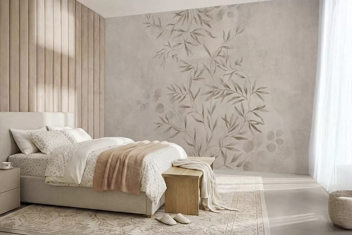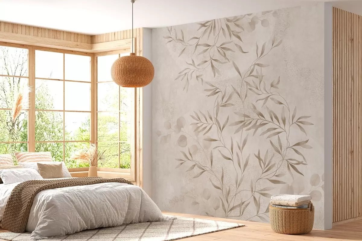 Fototapeter Botanisk mønster i beige og brune nyanser Nr. w05424v2