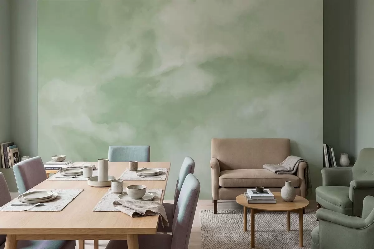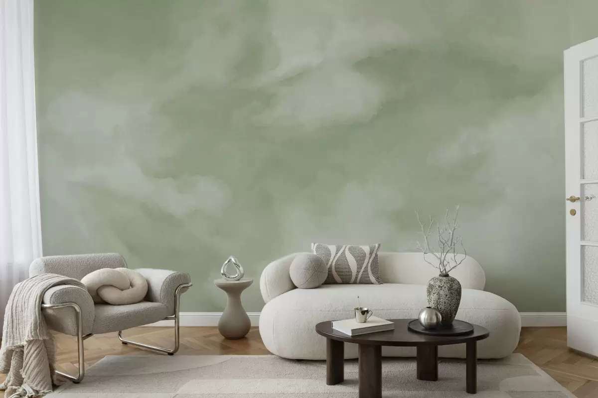 Fototapeter En myk, skyet bakgrunn i milde grønnfarger Nr. w05426v2