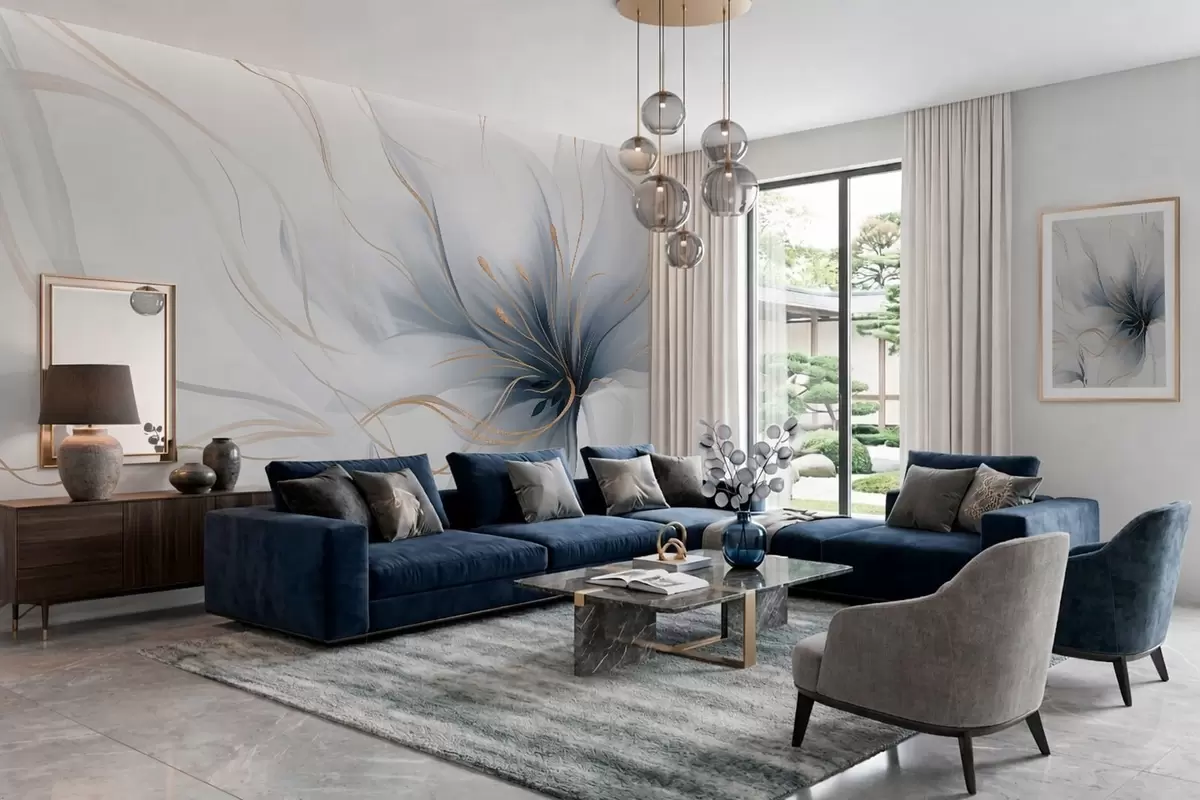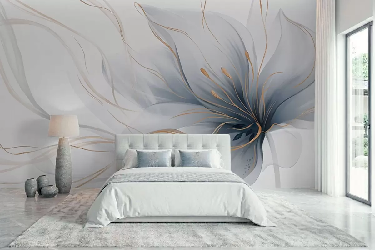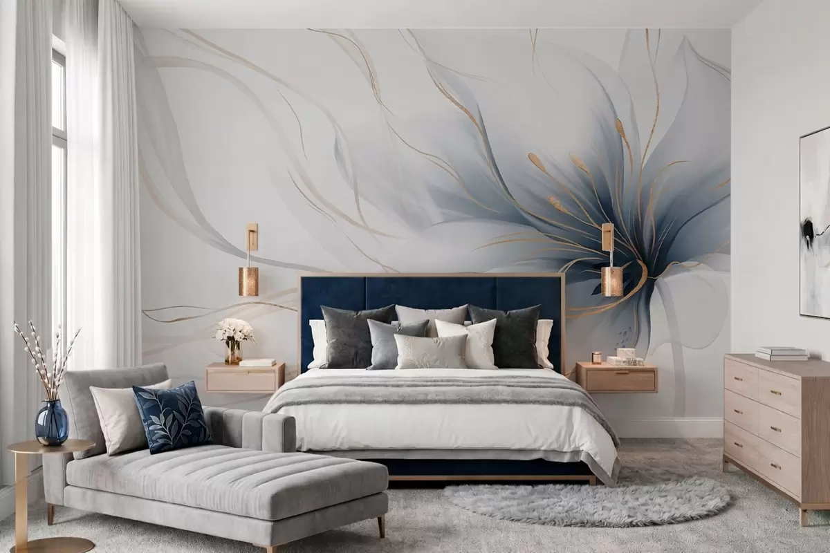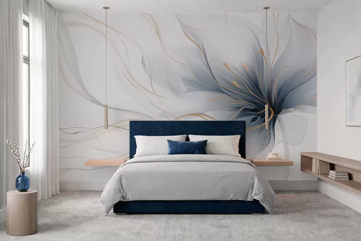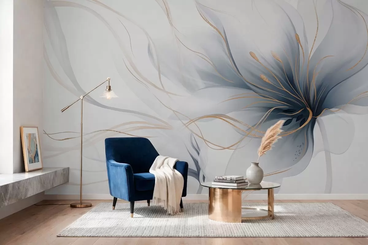 Fototapeter En abstrakt blå blomst med flytende linjer i Fluid Art-stilen Nr. w05428