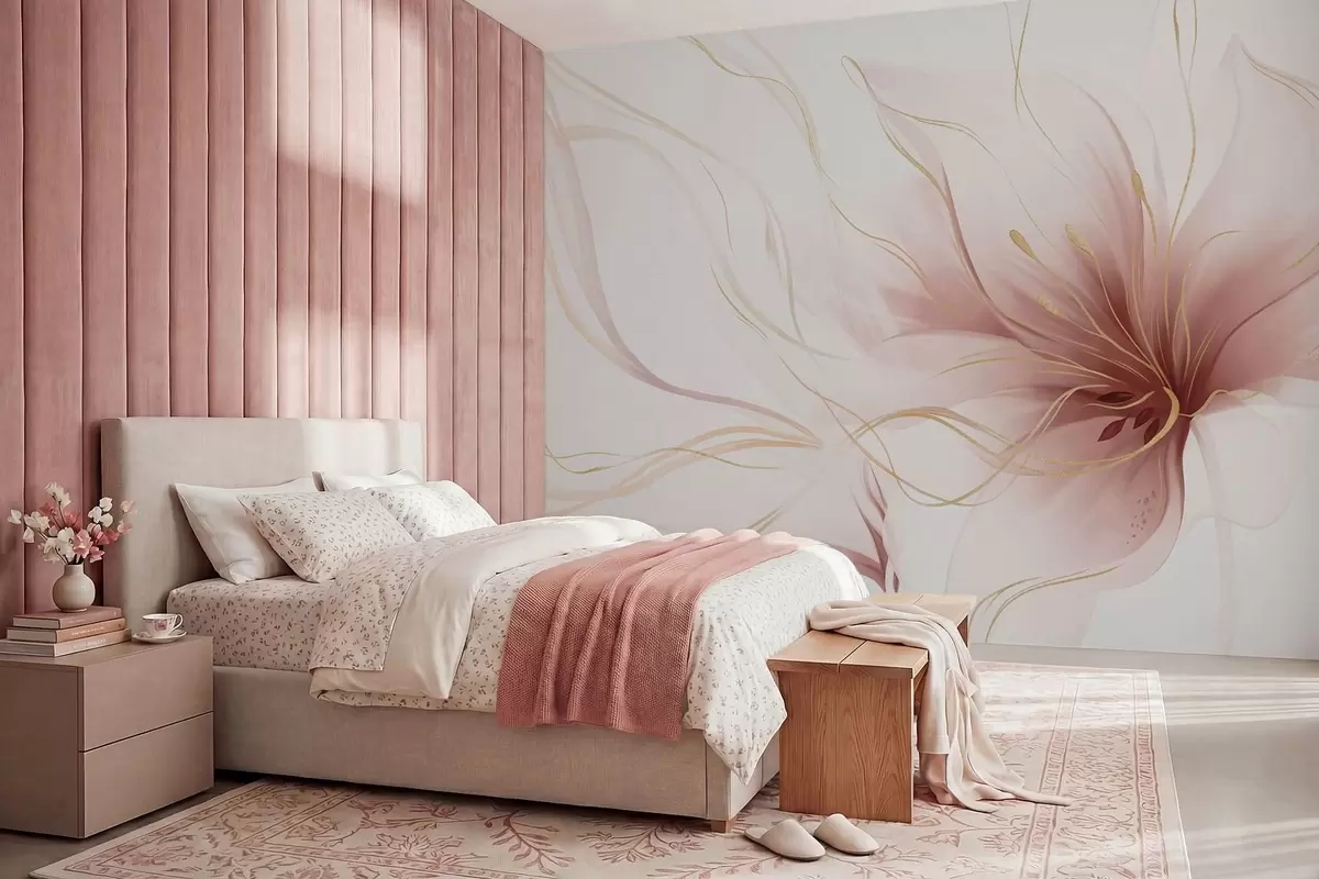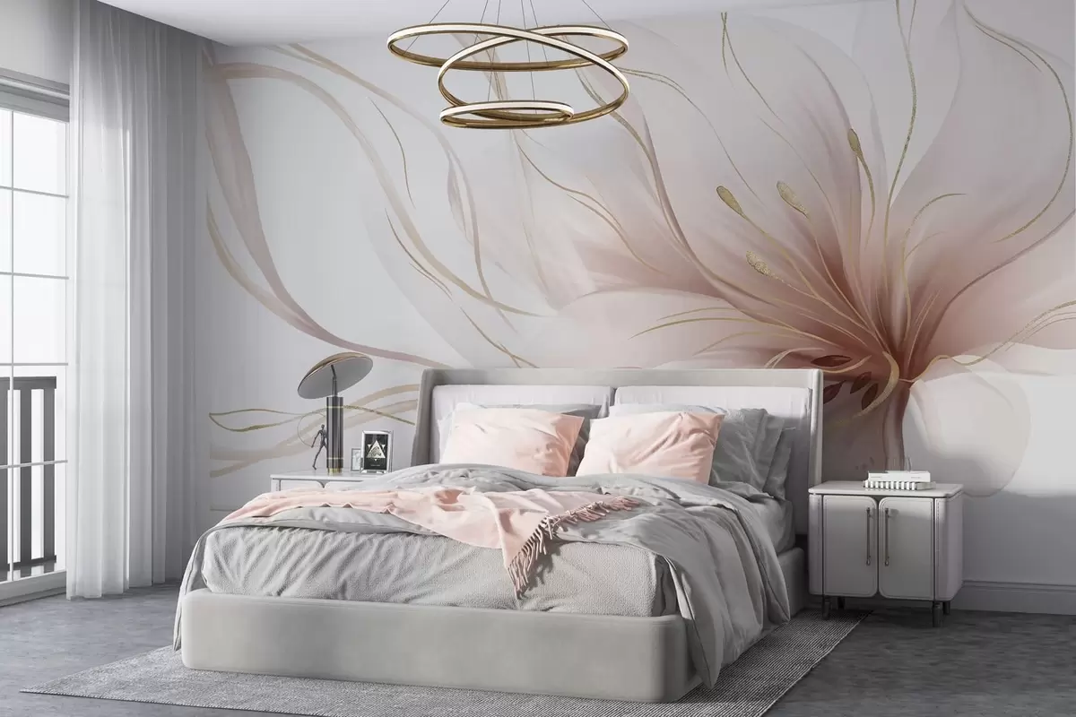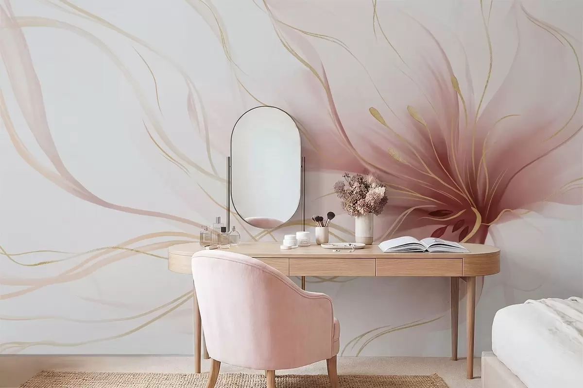 Fototapeter En abstrakt rosa blomst med flytende linjer i Fluid Art-stilen Nr. w05428v1