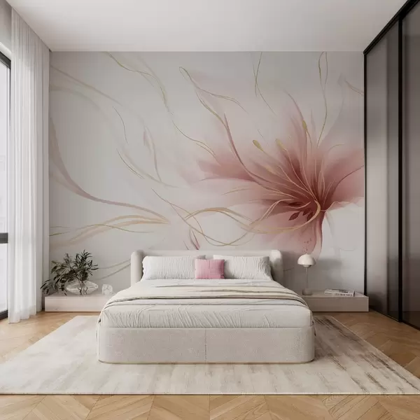 Fototapeter En abstrakt rosa blomst med flytende linjer i Fluid Art-stilen Nr. w05428v1