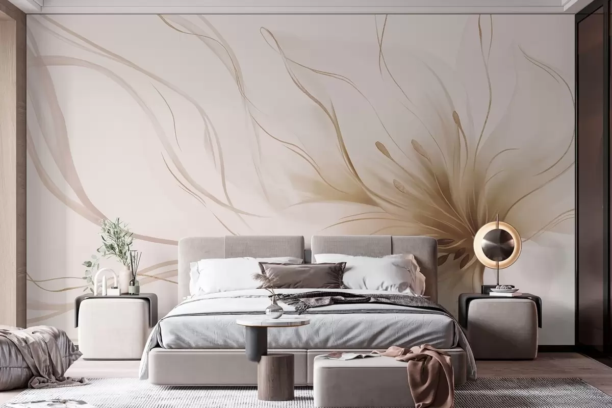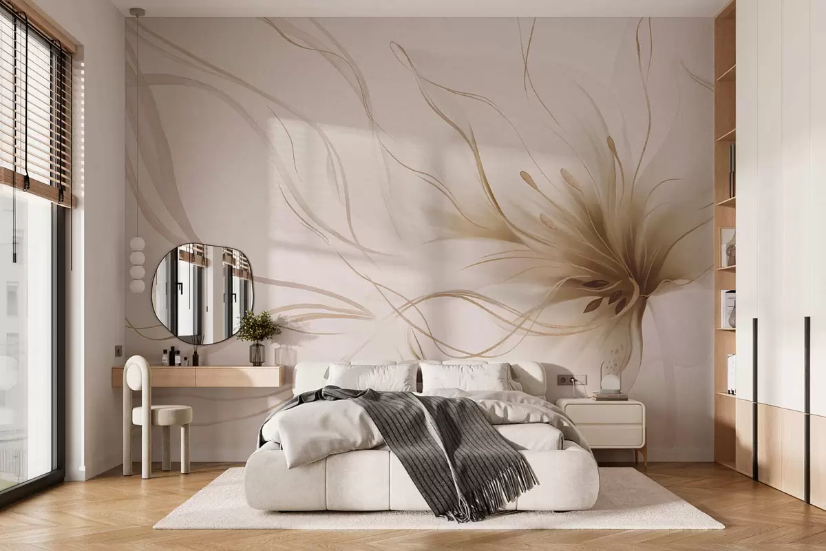 Fototapeter En abstrakt beige blomst med flytende linjer i Fluid Art-stil Nr. w05428v2