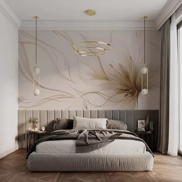Fototapeter En abstrakt beige blomst med flytende linjer i Fluid Art-stil Nr. w05428v2