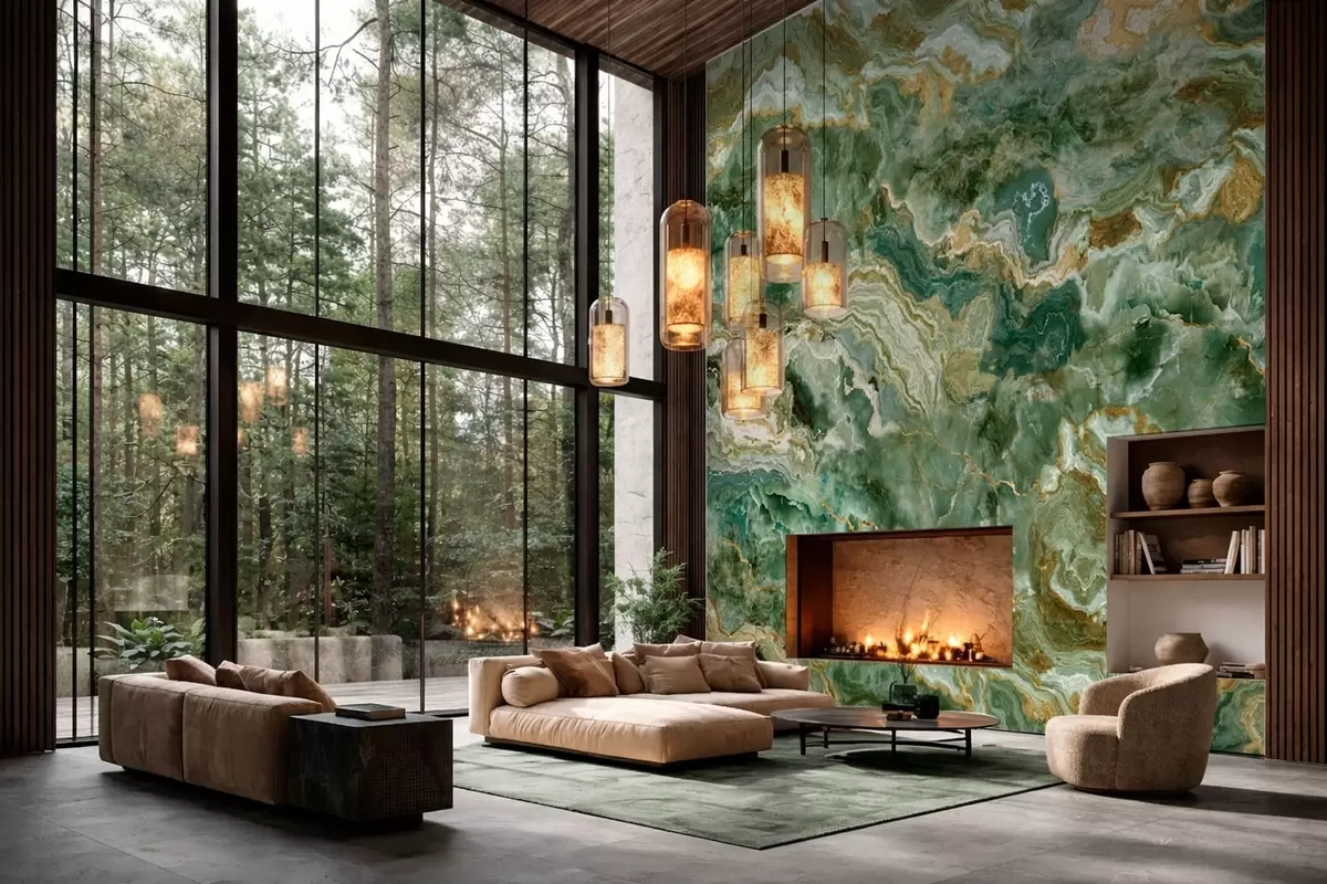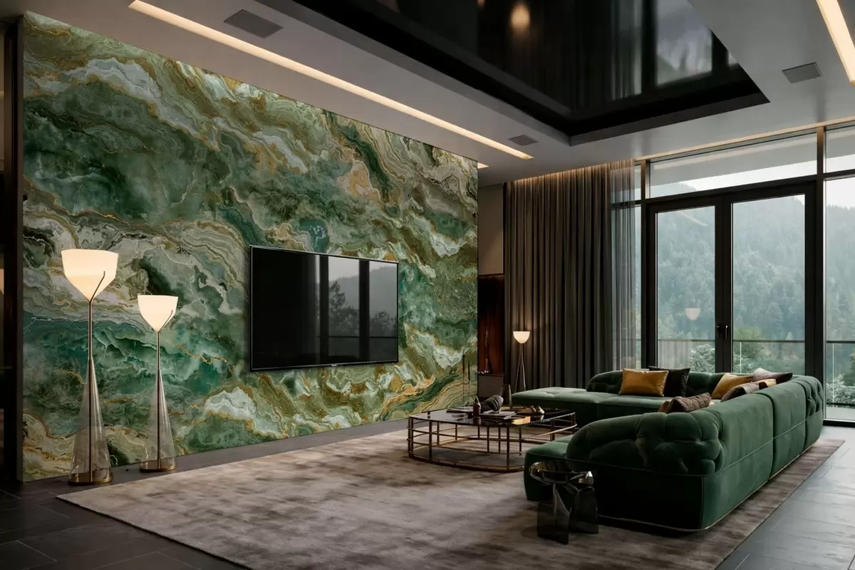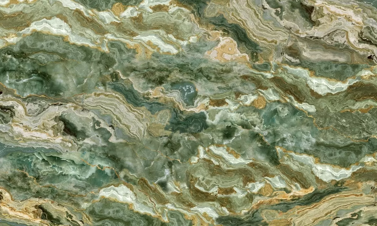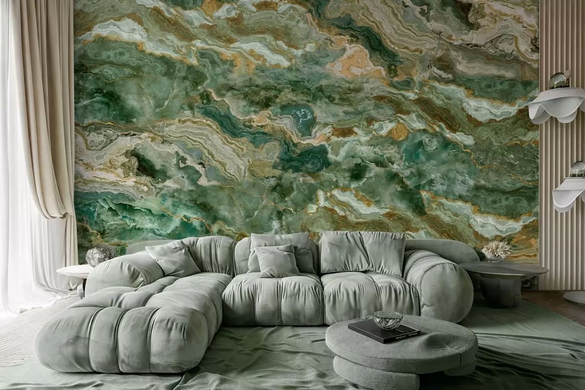 Fototapeter Grønn onyx-tekstur med flytende, lagdelte årer Nr. w05429