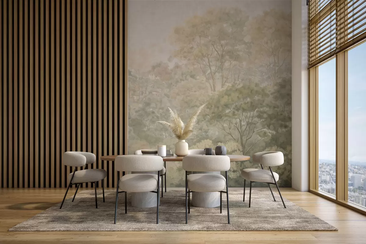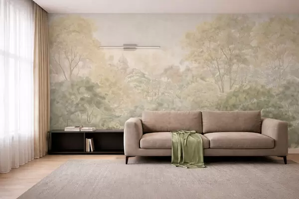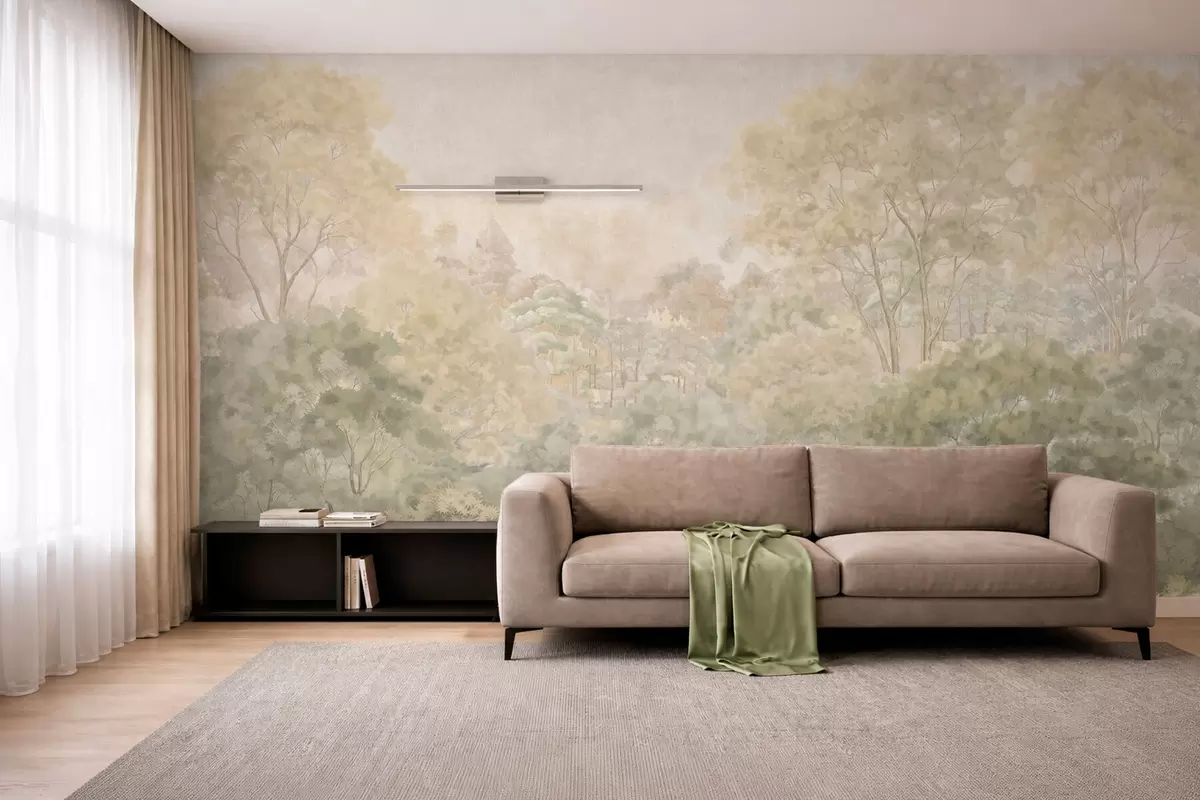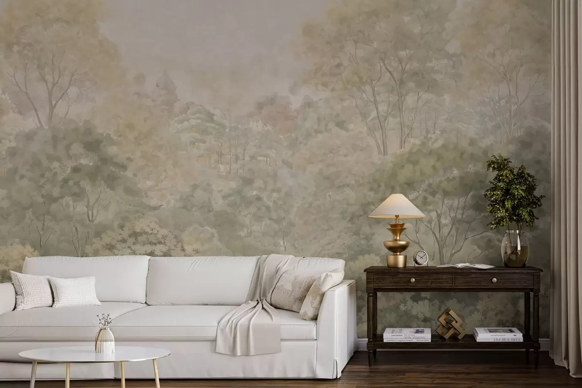 Fototapeter Et klassisk skoglandskap i dempede grønnfarger Nr. w05433