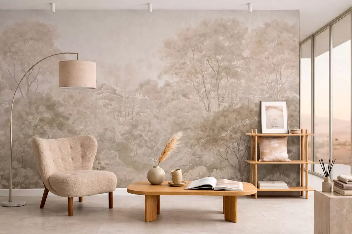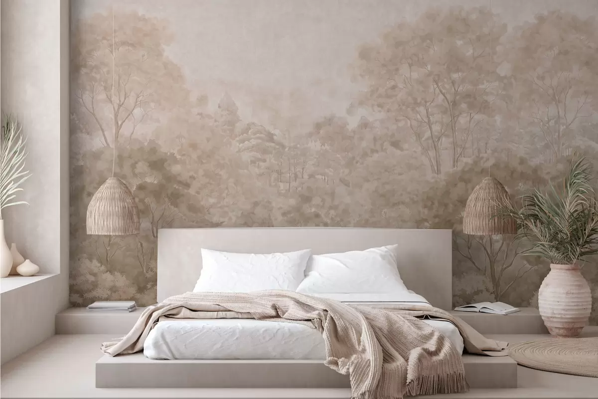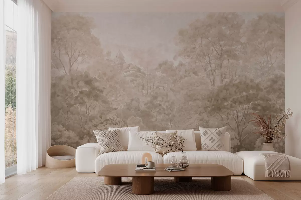 Fototapeter Et klassisk skoglandskap i varme beigefarger Nr. w05433v1