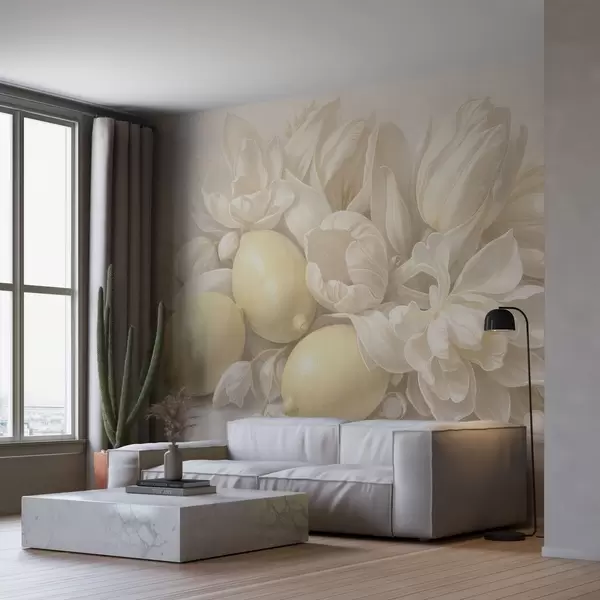 Fototapeter En delikat blomsterbukett med sitroner Nr. w05449