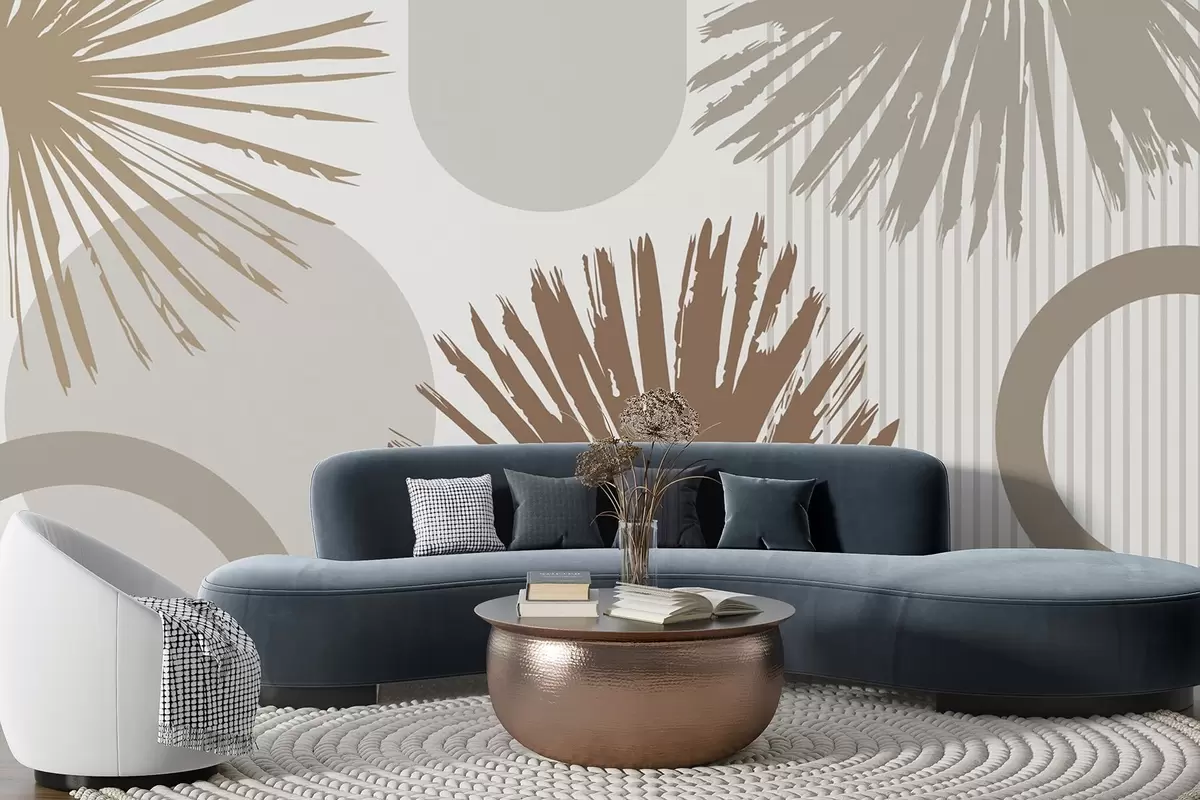 Fototapeter Abstraksjon med plante- og geometriske silhuetter Nr. w05505