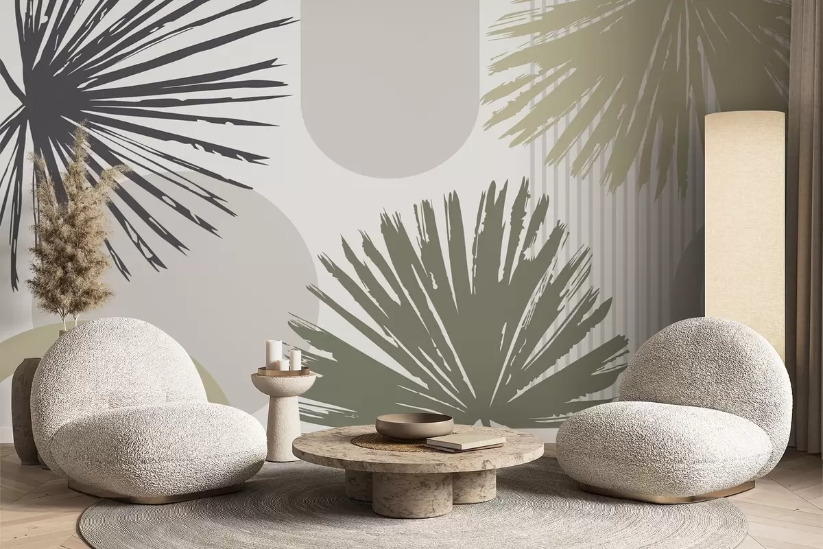 Fototapeter Abstraksjon med plante- og geometriske silhuetter Nr. w05505v2