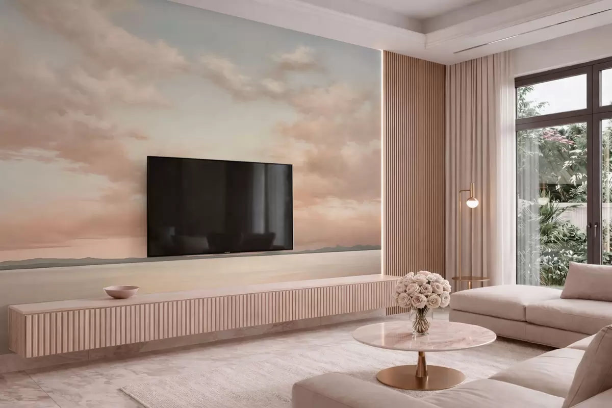 Fototapeter Minimalistisk havhorisont med pastellfargede skyer Nr. w05516