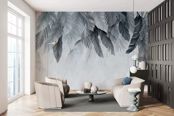 Fototapeter Tropiske hengende blader på betong Nr. w05521v1