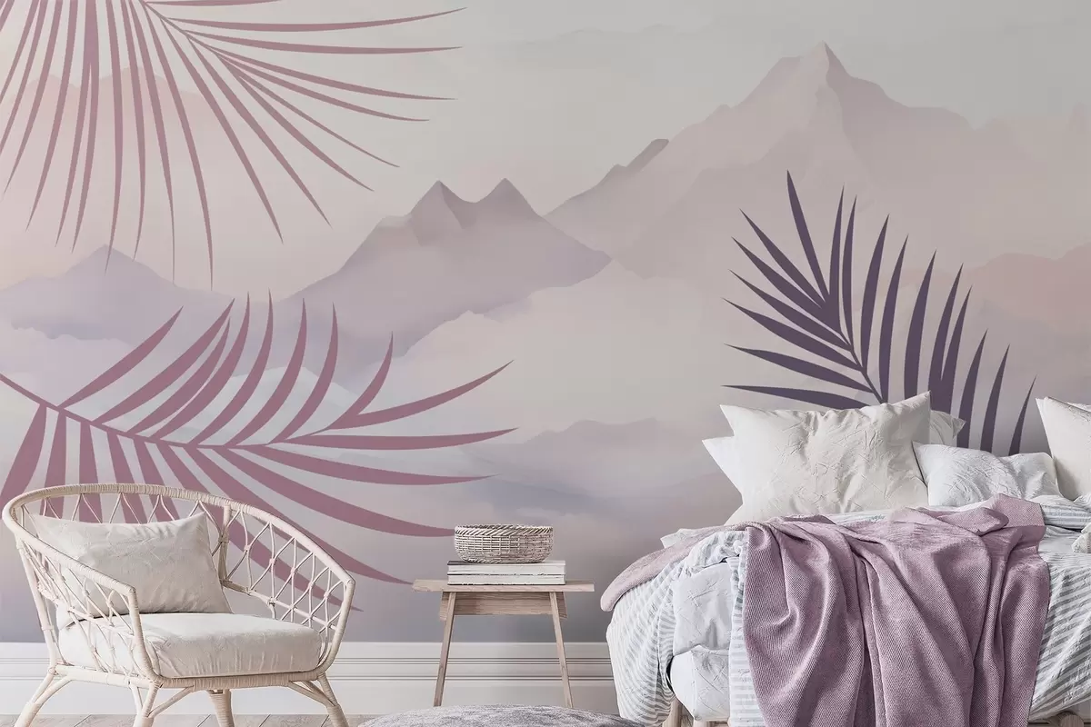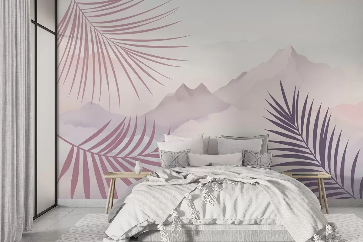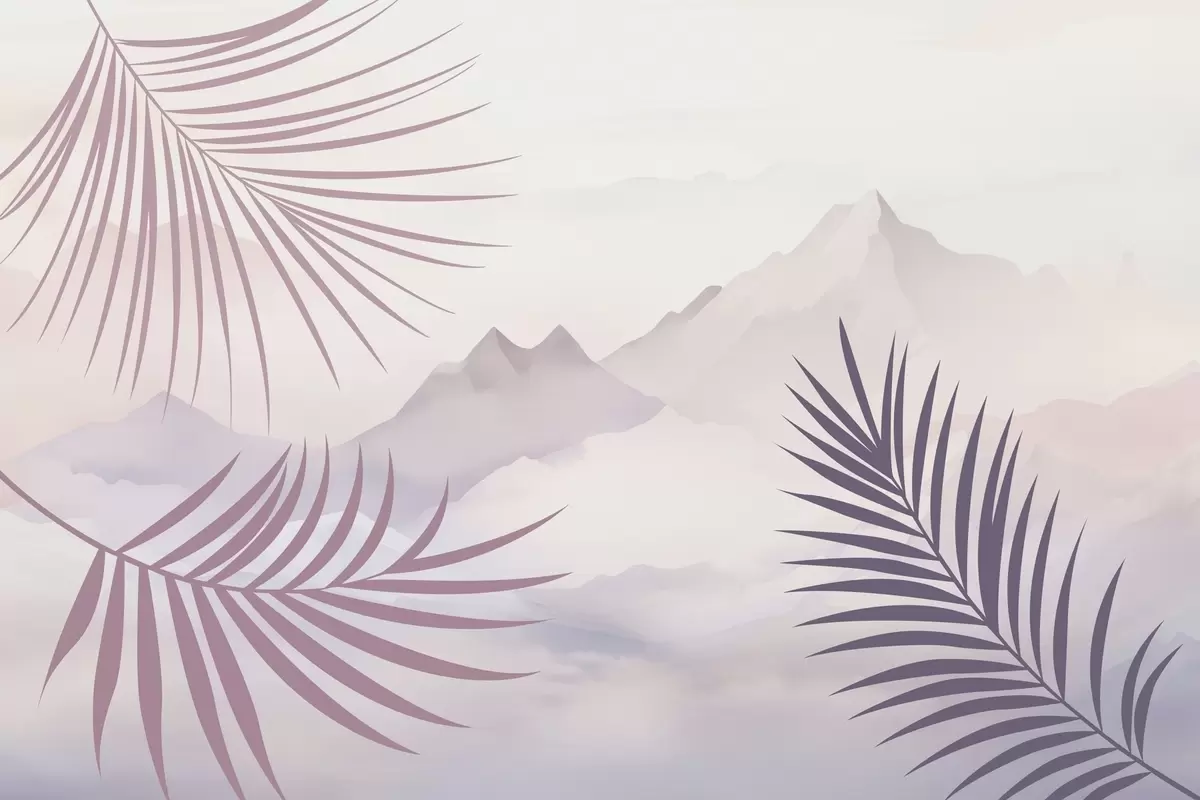 Fototapeter Palmeblader med fjellene i bakgrunnen Nr. w05548v1