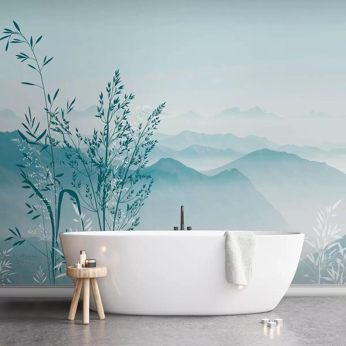 Fototapeter Fjellutsikt med planter og blomster Nr. w07910