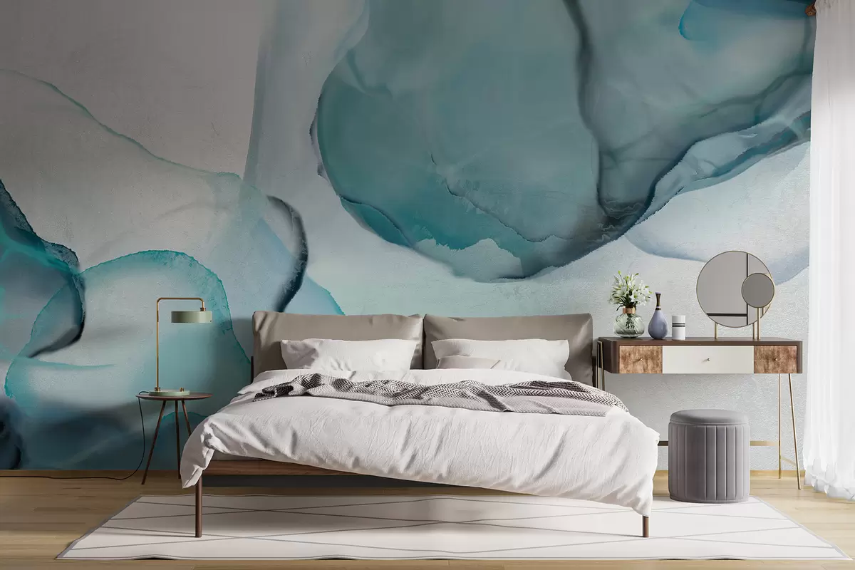 Fototapeter Abstrakt blå og hvit flytende kunst, som ligner rennende vann og blekk Nr. w07927