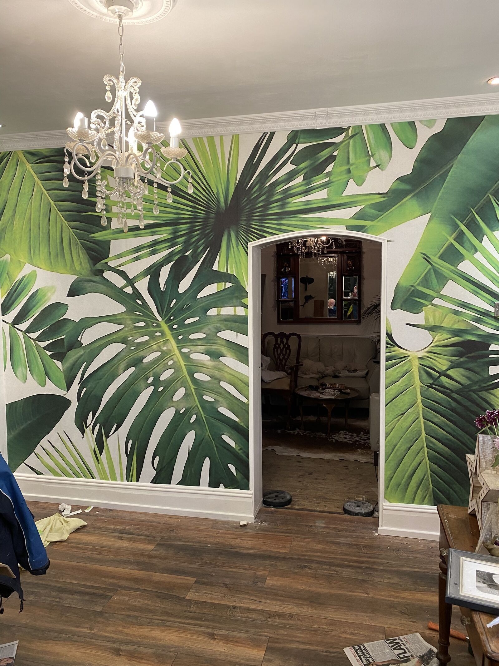 Tapetet blir delt opp i praktiske striper som hver er opptil 50 cm brede