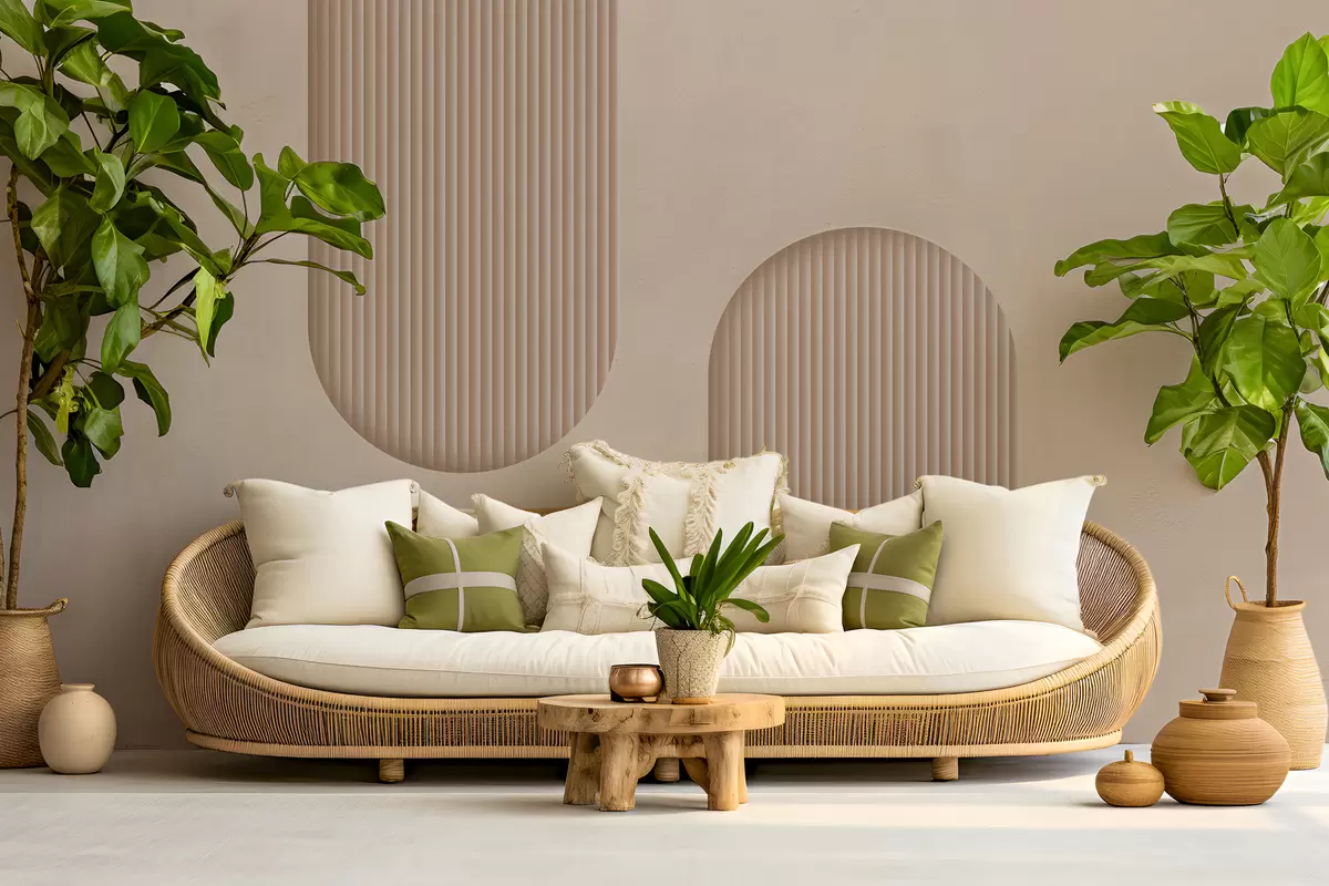 fototapeter Art Deco strukturtapet i varme beige toner. Imitasjon av volumetriske buer    w08048