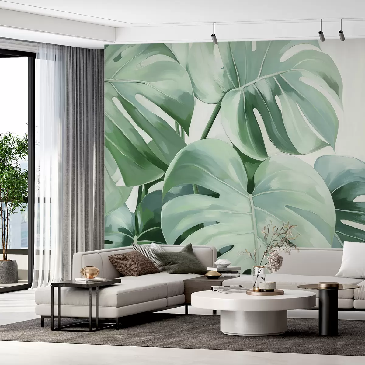 Fototapeter Grønne store blader av tropisk monstera Nr. w08116