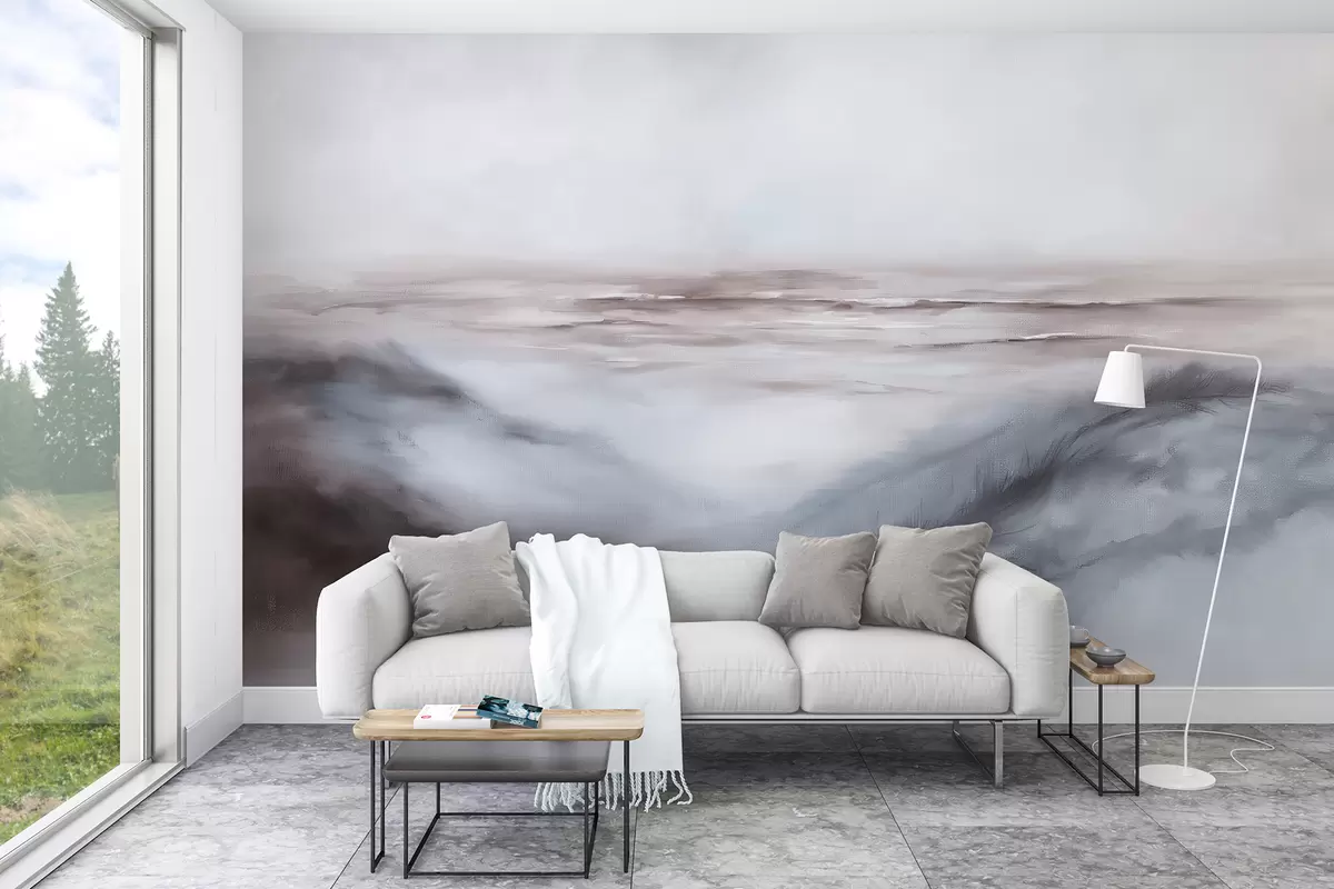 Fototapeter Abstrakt landskap i pastellfarger, penselstrøk, strand, hav, grå fargepallet Nr. w08141