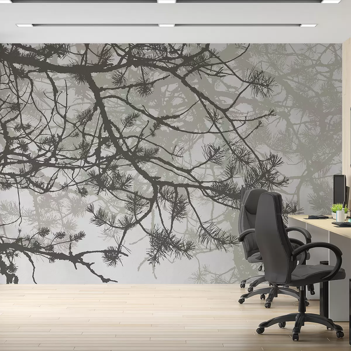 Fototapeter grener av et stort tre i gråtoner Nr. w08166