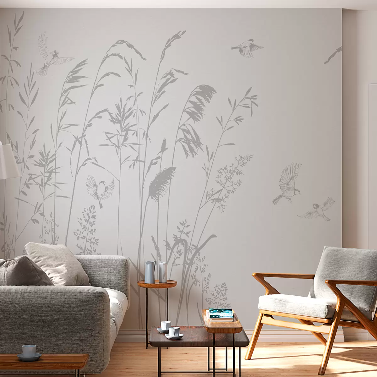 Fototapeter Planter og småfugler natur minimalisme grå farge Nr. w08172v1