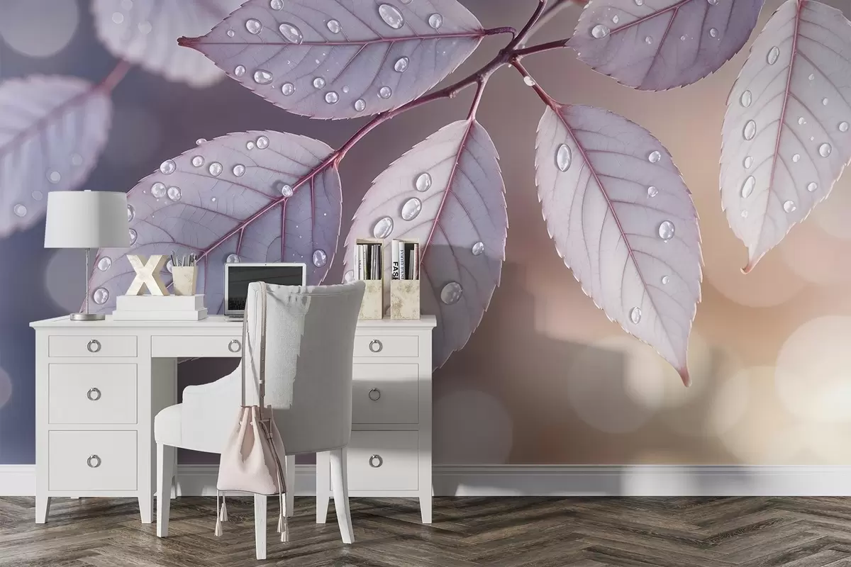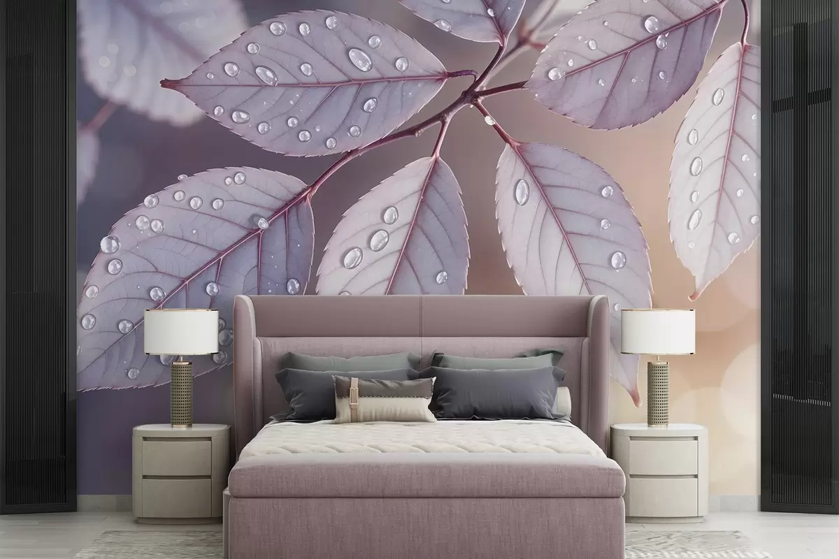 Fototapeter Delikate lilla blader med vanndråper, bakgrunn med mykt fokus Nr. w08419