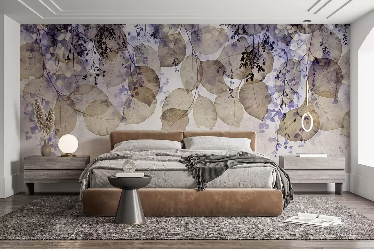 Fototapeter Delikate tørkede blader og blomster i nyanser av lilla, beige og hvitt mot en lett strukturert bakgrunn Nr. w08447