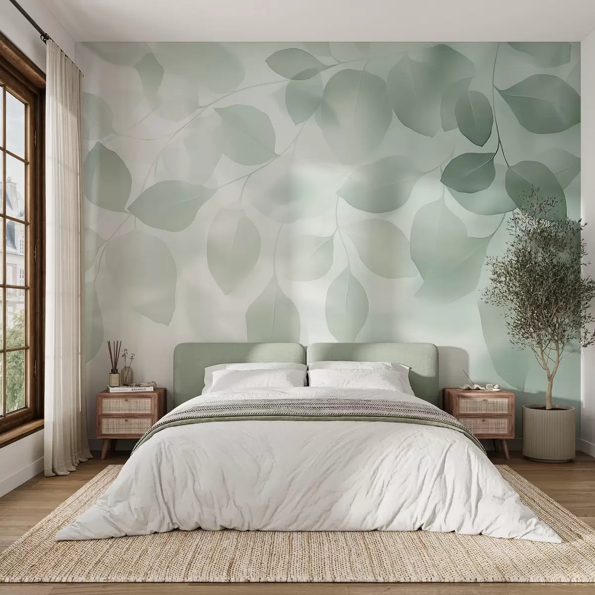Fototapeter Blomsterabstraksjon av blader i grønne toner Nr. w08492v1