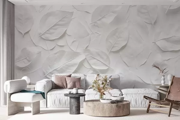 Fototapeter Hvit blomsterabstraksjon av blader Nr. w08494