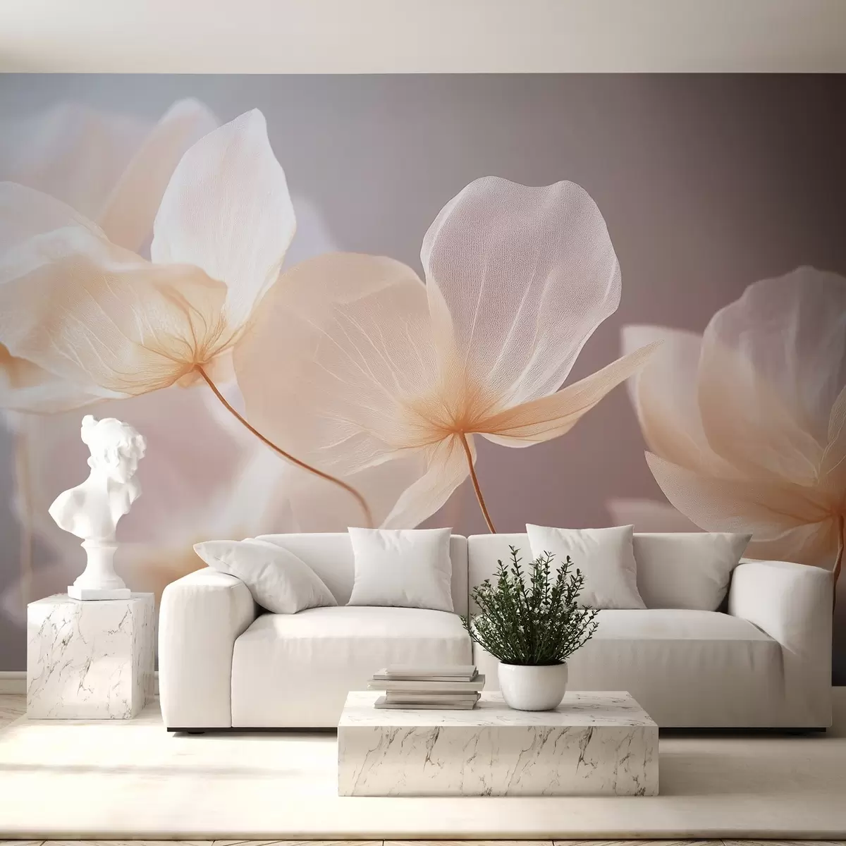 Fototapeter Lotusblader, en delikat komposisjon med rosa bakgrunn Nr. w08500v1
