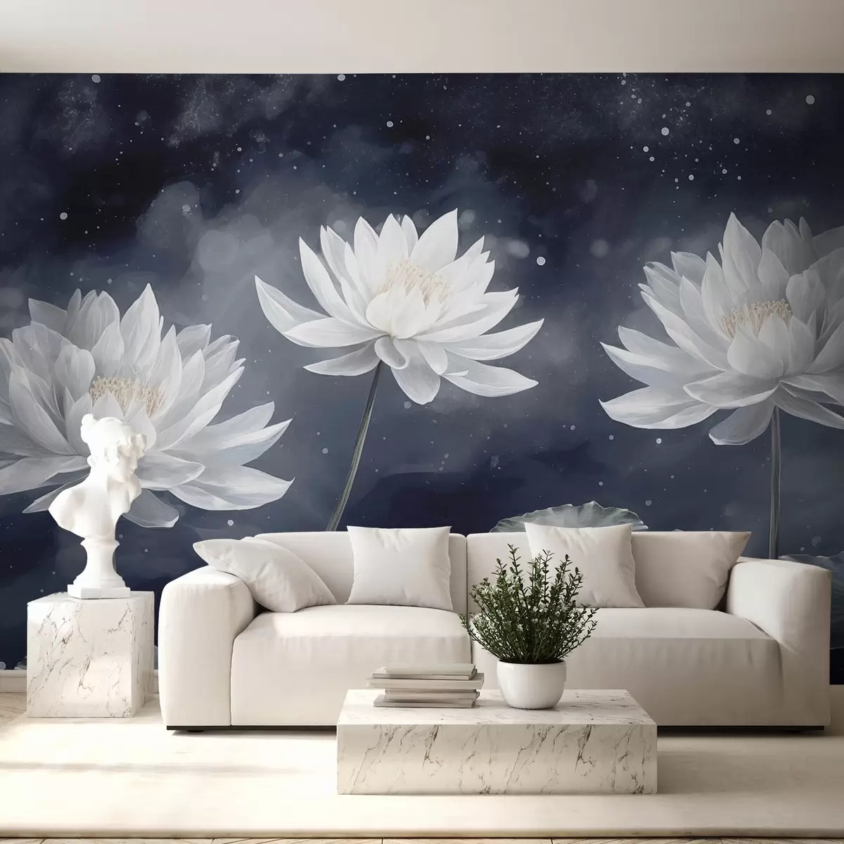 Fototapeter Tre lotusblomster på mørk bakgrunn Nr. w08506