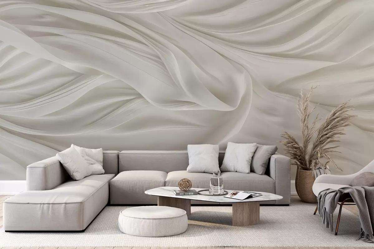 Fototapeter Moderne trykk med imitasjon av glatt, flytende hvitt stoff med myke, bølgende folder og bretter Nr. w08537