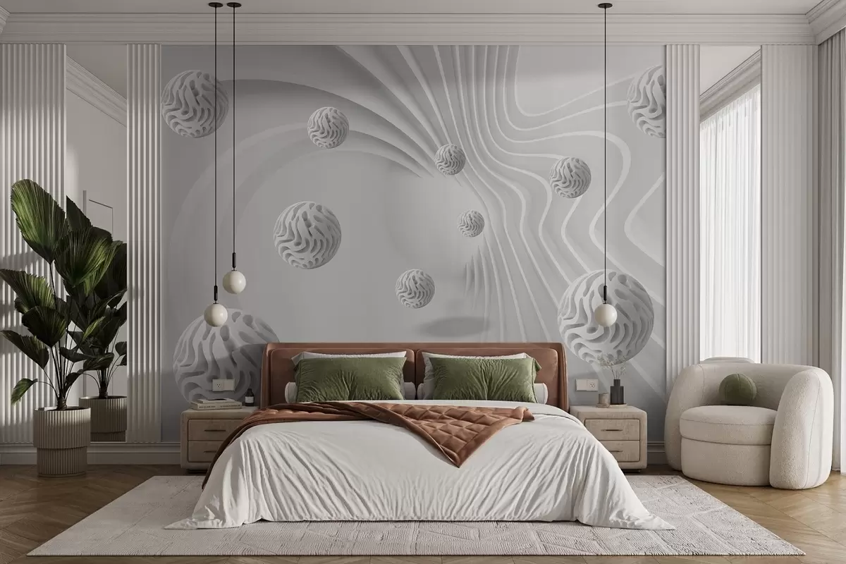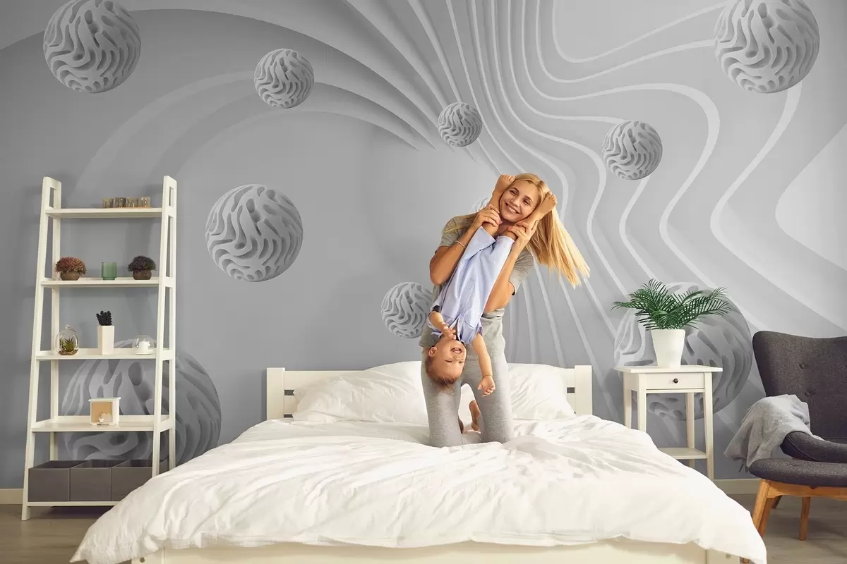Fototapeter 3D-abstraksjon i grått med kuler og dybdeeffekt Nr. w08553