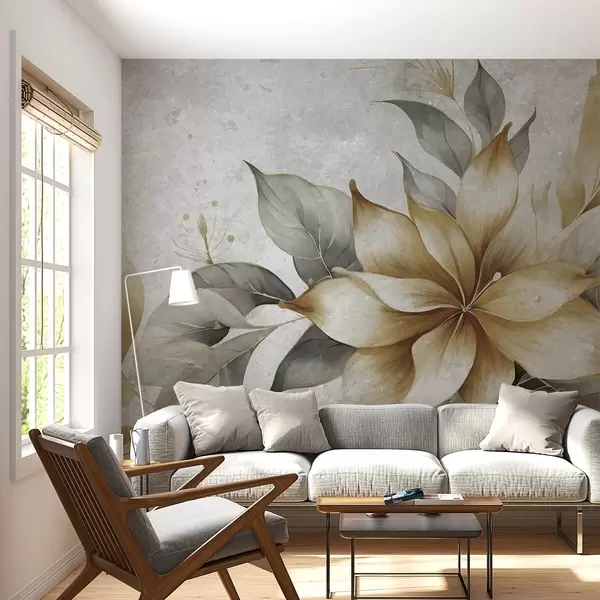 Fototapeter Blomstergren på en bakgrunn av betongimitasjon Nr. w08623
