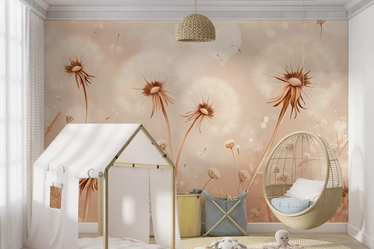 Fototapeter Elegante løvetann og villblomster i maleristil i varme toner Nr. w08657