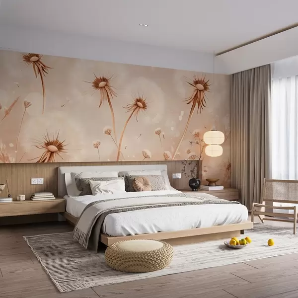 Fototapeter Elegante løvetann og villblomster i maleristil i varme toner Nr. w08657
