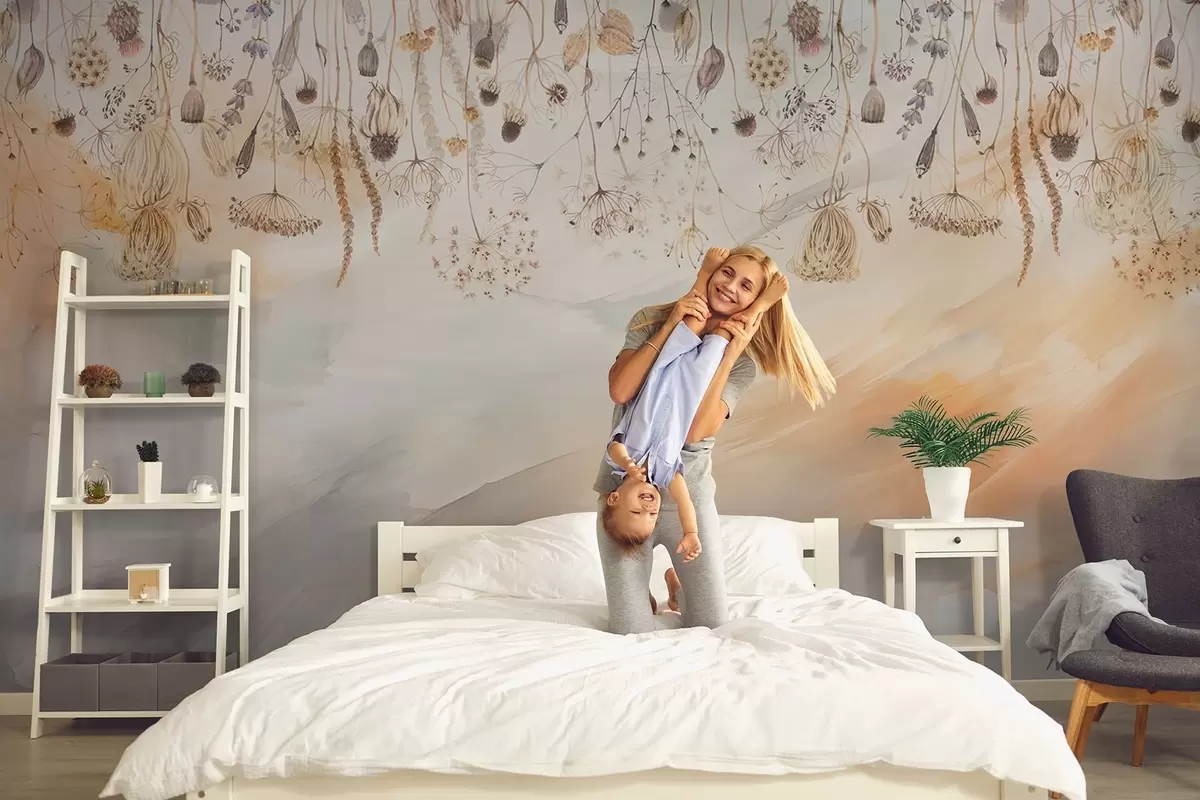 Fototapeter Villblomster i akvarellstil i pastellfarger på en bakgrunn av penselstrøk Nr. w08681