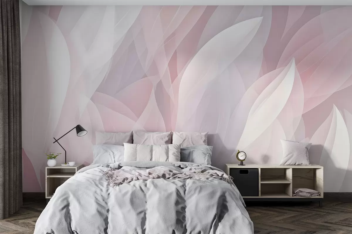 Fototapeter Abstrakt design med myke, kronbladlignende former i rosa og hvite nyanser som skaper en lagvis effekt Nr. w08774