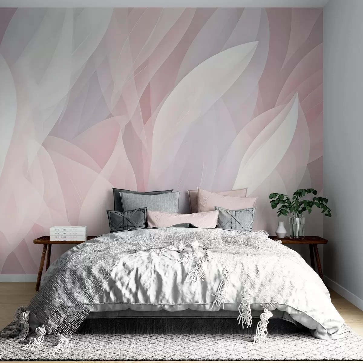 Fototapeter Abstrakt design med myke, kronbladlignende former i rosa og hvite nyanser som skaper en lagvis effekt Nr. w08774