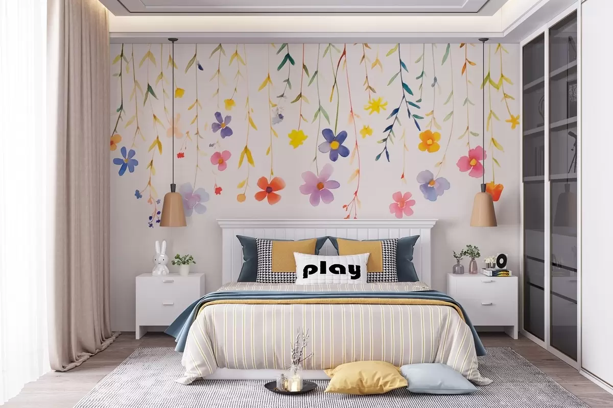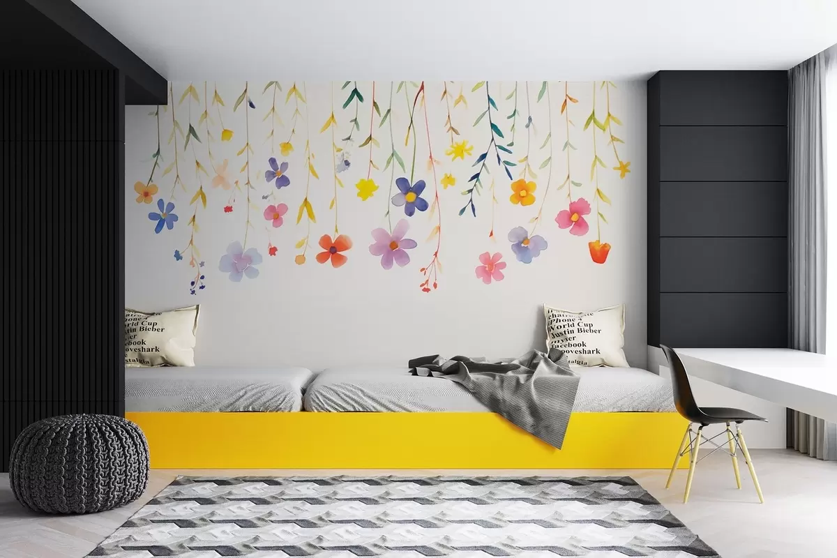 Fototapeter Villblomster i akvarellstil, enkel og fargerik Nr. w08851