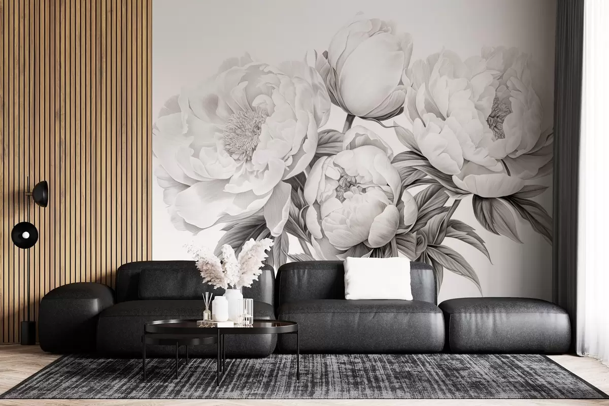 Fototapeter Svart-hvite pioner i blyanttegningsstil Nr. w08852