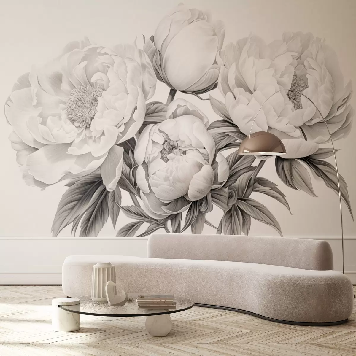 Fototapeter Svart-hvite pioner i blyanttegningsstil Nr. w08852