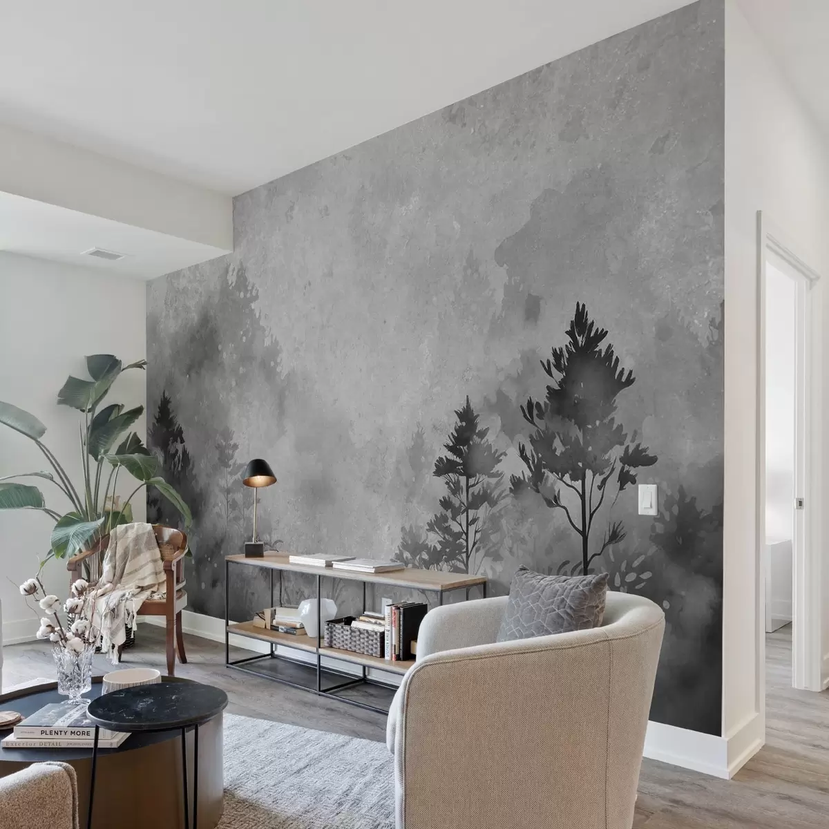 Fototapeter Skog, imitert akvarell i svart-hvitt-stil Nr. w08862v1