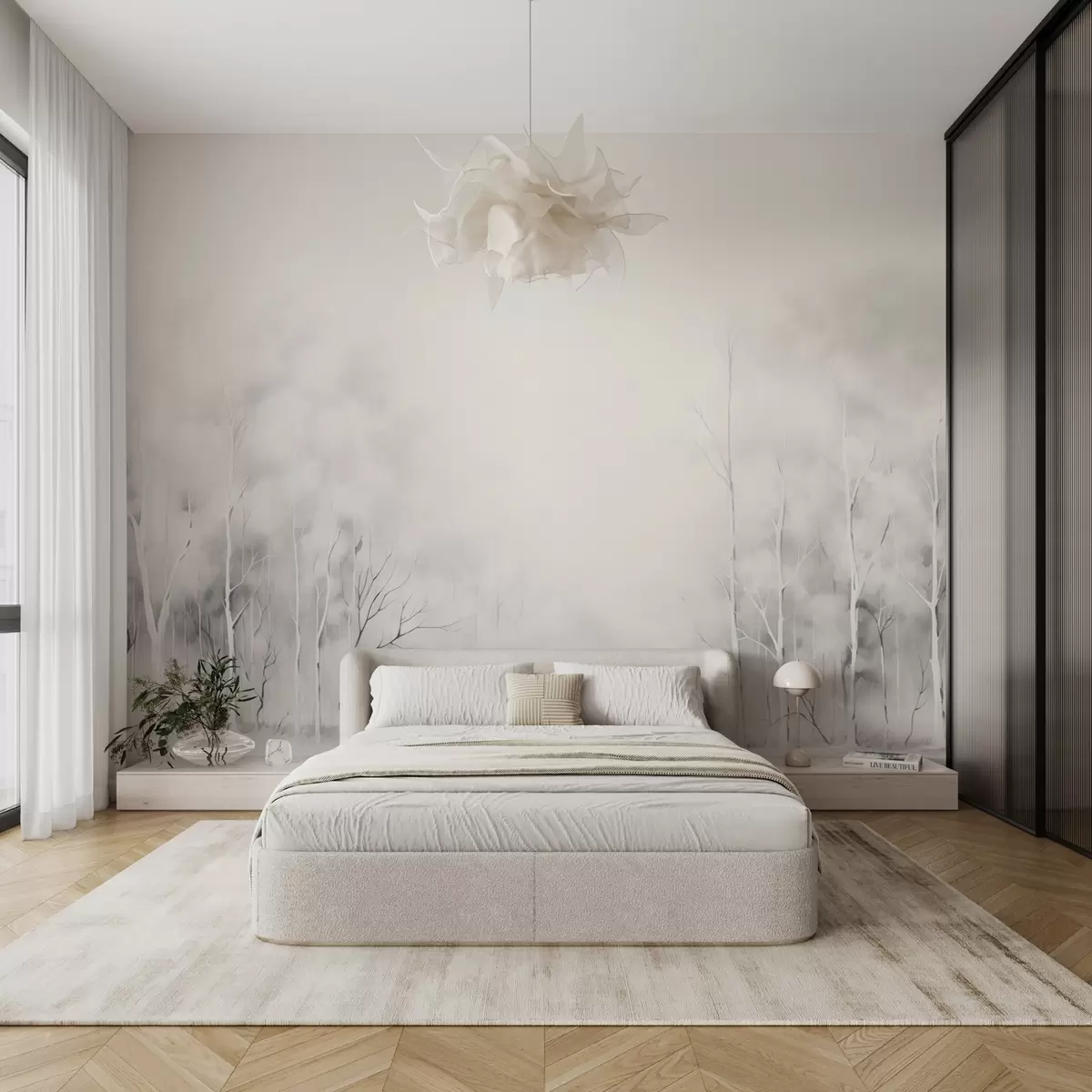 Fototapeter Trær i tåke i akvarellstil på en varm bakgrunn Nr. w08875