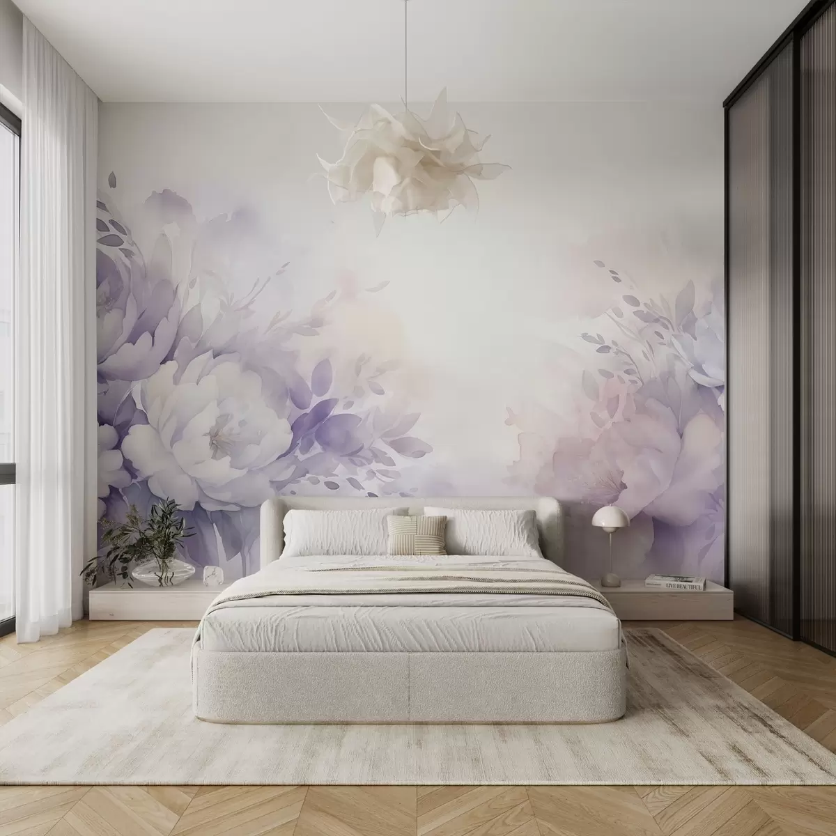 Fototapeter Store delikate lilla blomster, imitasjon av akvarell Nr. w08946