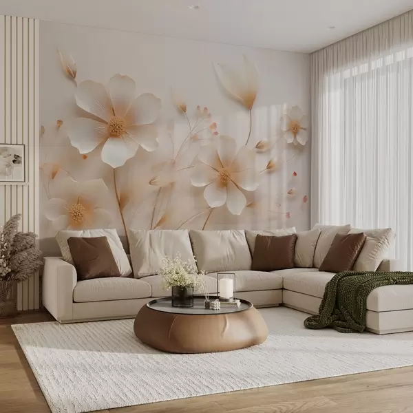 Fototapeter Lys beige delikate villblomster Nr. w08953